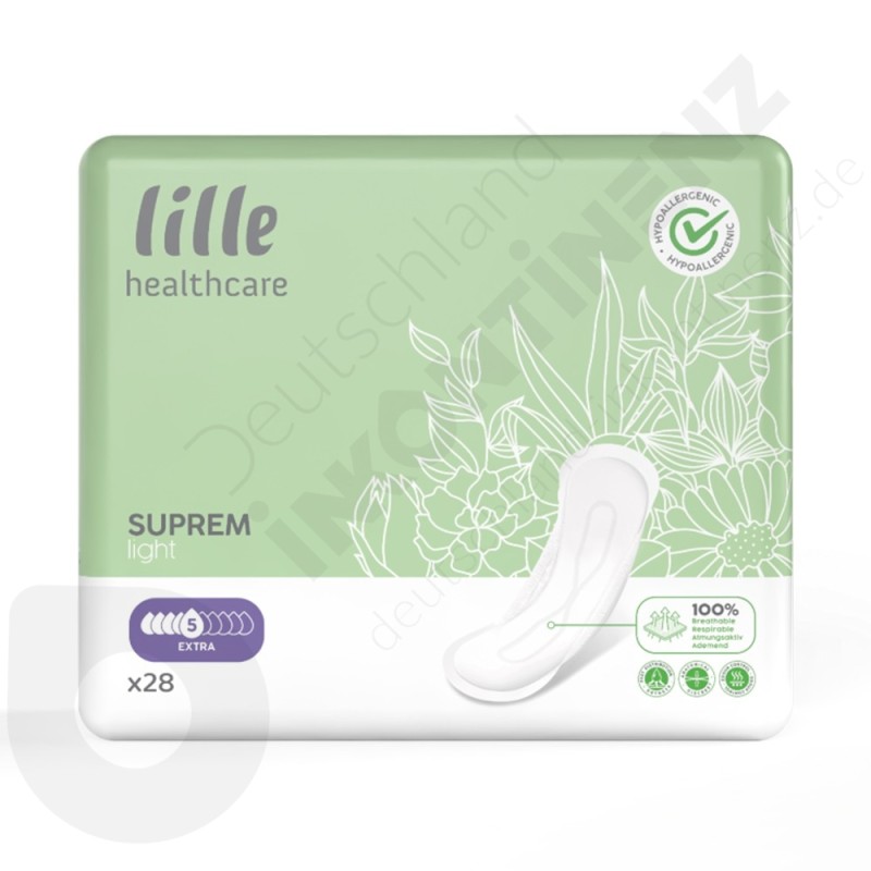 Lille Healthcare vam z linijo izdelkov SUPREM nudi celoten nabor izdelkov s tehnologijo LILLE AIR SYSTEM, ki bodo poskrbeli za večje udobje in diskretnost ter zmanjšali težave zaradi občutljive kože. Zunanja plast je sestavljena iz plasti netkanega blaga in popolnoma nepremočljive plasti, ki odlično diha. Paropropustna prevleka zmanjšuje razvoj bakterij in draženje kože, obenem pa preprečuje alergije.